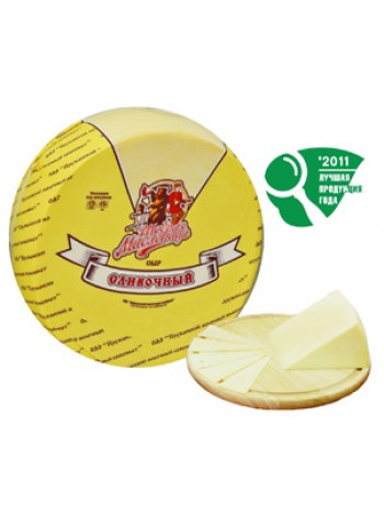 Сыр «Сливочный» с массовой долей жира в сухом веществе 50%, 55%. Вырабатывается по ТУ ВY 101497290.007-2205, ТИ РБ 200027027.034-2009.Изготовлен из пастеризованного коровьего молока, путем свертывания его молокосвертывающим ферментным препаратом с использованием специальных бактериальных заквасок. Вкус и запах: умеренно выраженный сырный слегка кисловатый. Консистенция: тесто нежное, пластичное, однородное по всей массе. Цвет: однородный от светло-желтого до желтого. Рисунок: на разрезе рисунок из глазков неправильной формы, равномерно расположенных Упаковка: упакован под вакуумом. Вид упаковки – пакеты из многослойной термоусадочной пленки. Форма продукта:– цилиндр, диаметр 28 см, массой до 8кг, транспортная тара - в картонном коробе по 2 цилиндра, общий вес короба от 16 до 18 кг. - прямоугольный брусок 50*30 см, масса до 18 кг, транспортная тара – картонный короб по 1 прямоугольному бруску, общий вес короба до 18кг.Пищевая ценность на 100 грамм:50%жир -белки – 23,5 г; жиры – 28,5 г. Энергетическая ценность - 351 ккал. Срок годности:- 180суток с даты изготовления в целой упаковке при t хранения от 0о С до плюс 4о С и относительной влажности воздуха от 75% до 85%.